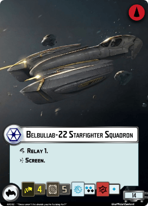 Screen. (While you are defending, for each other friendly squadron the attacker is engaged with that lacks screen, up to 3, you gain dodge 1.)