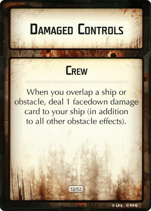 When you overlap a ship or obstacle, deal 1 facedown damage card to your ship (in addition to all other obstacle effects).