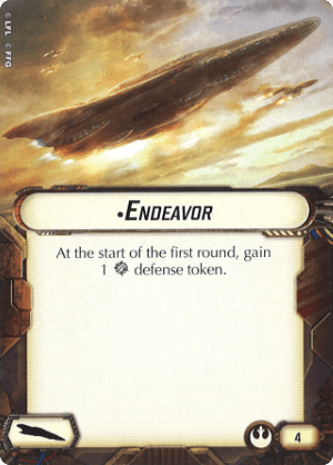 At the start of the first round, before Command dials are assigned, if a ship equipped with Endeavor is not set aside (due to an effect such as Admiral Raddus), it gains 1 Contain defense token.