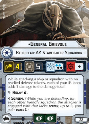 Screen. (While you are defending, for each other friendly squadron the attacker is engaged with that lacks screen, up to 3, you gain dodge 1.)