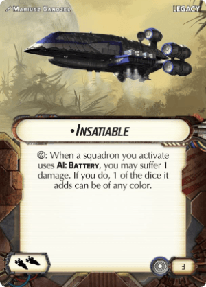 : When a squadron you activate uses AI:Battery, you may suffer 1 damage. If you do, 1 of the dice it adds can be of any color.