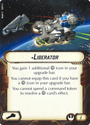 A ship that equips Liberator gains the ability to equip a Fleet Command upgrade card, but, you cannot equip Liberator to a ship that already has a Fleet Command icon in its upgrade bar.