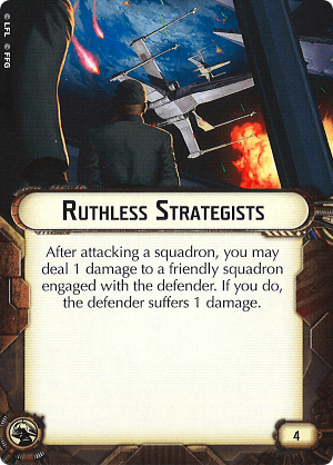 After attacking a squadron, you may deal 1 damage to a friendly squadron engaged with the defender. If you do, the defender suffers 1 damage.