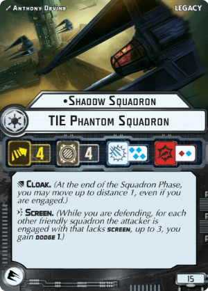 Screen. (While you are defending, for each other friendly squadron the attacker is engaged with that lacks screen, up to 3, you gain dodge 1.)