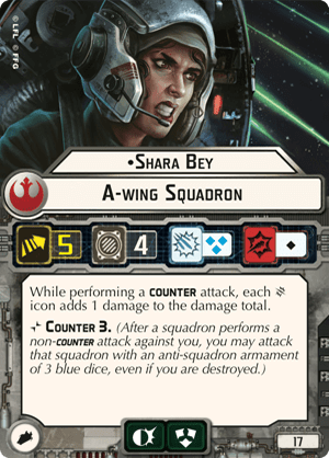 Counter 3. (After a squadron performs a non-counter attack against you, you may attack that squadron with an anti-squadron armament of 3 blue dice, even if you are destroyed.)