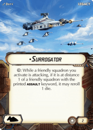 : While a friendly squadron you activate is attacking, if it is at distance 1 of a friendly squadron with the printed assault keyword, it may reroll 1 die.