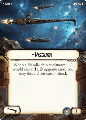 This Upgrade Card’s effect triggers when a friendly ship at distance 1-5 would discard a upgrade.